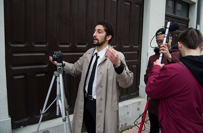 “Por el tema del coronavirus nos queda una escena por terminar y otra por grabar”, lamenta el codirector, que recuerda que el plan de rodaje para esas escenas estaba fijado para el día siguiente a la declaración del estado de alarma. “Íbamos a grabar el domingo por la mañana y para la semana siguiente también teníamos rodajes programados”, explica Fernando, que da vida, enfundado en una gabardina, al detective protagonista de la historia. Ya antes de que se impusiera el confinamiento obligado, los problemas para cuadrar fechas con el resto del elenco obligaron a concentrar gran parte de la grabación a finales de diciembre, aprovechando la presencia en tierras bercianas de dos de los actores, que viven en Madrid y Valladolid.