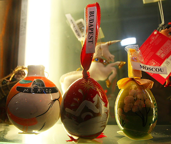 Belenes, huevos de diferentes países, desde Moscú a Budapest, bolas de nieve, muñecos, Papá Noel en todas sus versiones -incluida una con firma Tim Burton- y “aderezos” para el árbol de Navidad que pasan por las tradicionales bolas, ositos, ángeles y decenas de “colgantes” de las más variadas formas, tamaños y colores. Y cada uno de estos objetos muestran un “cartelito” en el que indica cual es la ciudad o el país de origen.