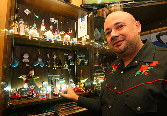 Unos 400 motivos navideños, entre bolas de nieve, bolas de árbol, muñecos y otros adornos que ha ido atesorando a lo largo de más de dos décadas y gracias a la generosidad de sus amigos y clientes, que en cada viaje o escapada se han acordado de su particular “pasión”. “Mi pasión por la Navidad me viene de pequeño, como todos, cuando ibas con tu padre a buscar el árbol y el día 20 de diciembre se convertía en un día especial, cuando lo montabas con sus adornos y espumillón con la familia”, recuerda Rodríguez.