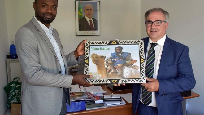 Al término de la reunión le entregó un ejemplar de la revista 'Lo Mejor de las Autonomías', con un reportaje de San Facundo, y en agradecimiento Alassane Dieng le entregó "un cuadro con un precioso marco y una fotografía de sí mismo desierto mauritano", apunta Ricardo Vila.
