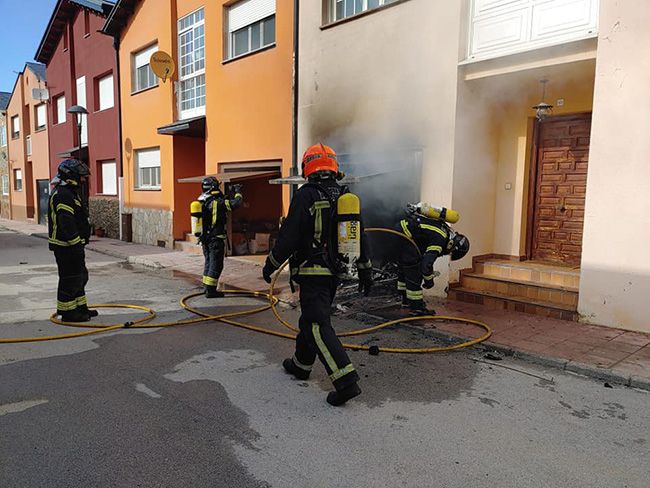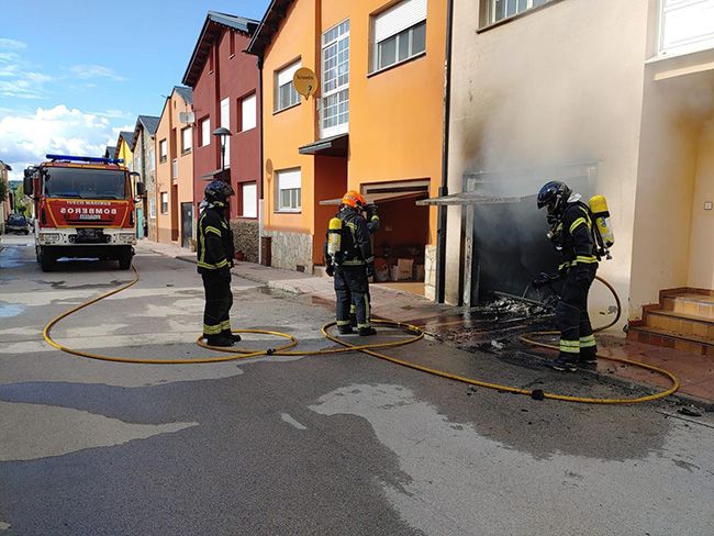 El suceso se produjo en torno a las 16.30 horas, en la calle Peregrinos de la urbanización Camino de Santiago, a causa de un escape de gas de la manguera del quemador. Afortunadamente, el propietario de la vivienda pudo abandonar el garaje y salir ileso, por lo que solo hay que lamentar daños materiales.