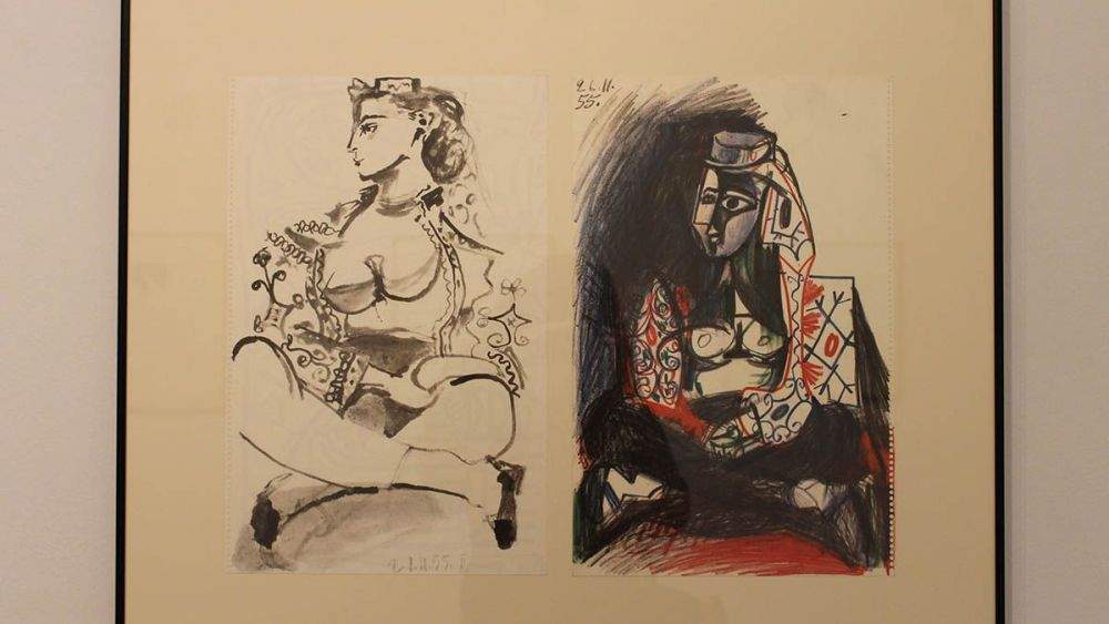 Por último, la serie ‘Bailarines’ incluye 14 grabados sobre cuero con dibujos académicos que muestran el dominio total de la técnica y el sentido estético clásico de uno de los pintores españoles más universales. La muestra se completa con tres obras en un único marco de la serie del estudio ‘La California de Picasso’, y dos cuadros más con dibujos preparatorios de ‘Las mujeres de Argel’, uno de cuyos cuadros alcanzó el récord histórico por su precio en subasta.
