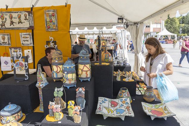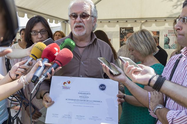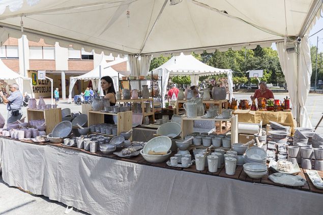 La Feria de la Cerámica se estrenó este miércoles en su ubicación habitual del patio del Colegio Campo de la Cruz de Ponferrada. El evento ha reducido participación al pasar de 50 a 40 expositores, lo que su organizador, Gerardo Queipo, atribuye a la "competencia fuerte" de la Feria de Valladolid. Queipo aprovechó la inauguración para entregar a representantes del Ayuntamiento de Ponferrada el diploma que acredita a Embarrarte (actividad paralela a la exposición) como finalista de los Premios Nacionales de Cerámica en el pasado Congreso Europeo de Talavera de la Reina.
