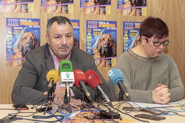 El alcalde de Camponaraya, Eduardo Morán, junto a al concejala de Ferias, Amparo Valtuille, durante la presentación de la Feria de Perros de Caza / Mario de la Torre