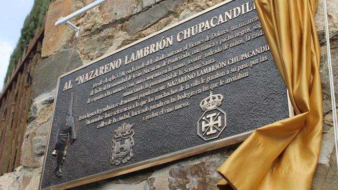 El Ayuntamiento de Ponferrada y la Real Hermandad Jesús Nazareno han descubierto este sábado una placa en la iglesia de San Andrés dedicada a la figura del Lambrión Chupacandiles, una de las mas representativas de la Semana Santa ponferradina. "El lugar elegido es un acierto", ha comentado el Mayordomo de la Cofradía, Marco Morala, "al lado de la fortaleza templaria y en el camino, porque e Lambrión a su manera también hace un camino".