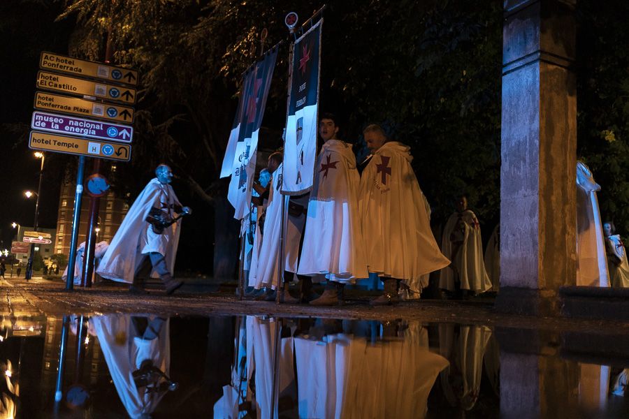 En el acto se realizó una alabanza al caballero y renovación de los votos de los caballeros ordenados al ritmo de gaitas y tambores. A continuación, la Asociación de Amigos de la Noche Templaria llevó a cabo en la Plaza del Ayuntamiento la Quiebra de la Luna Templaria.