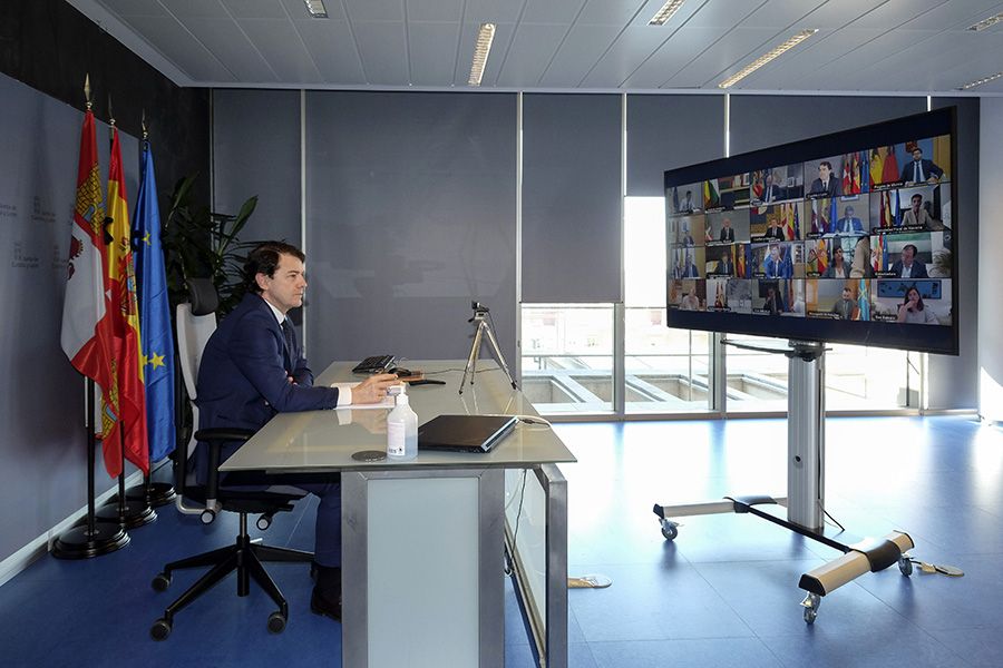 El presidente de la Junta, Alfonso Fernández Mañueco, tras la ruenión telemática con Sánchez y el resto de representantes autonómicos / Fotos JCyLLa Junta de Castilla y León ha remitido una carta a las residencias de la comunidad para informar de que desde el próximo mes de junio se les dejará de suministrar equipos de protección individual. Al respecto, el presidente de la institución autonómica, Alfonso Fernández Mañueco, puntualizó que este anuncio, “que se ha hecho con la antelación suficiente para que las residencias vayan suministrando material a trabajadores y usuarios”, responde a “una indicación del mando único del Gobierno”, por la que “son las empresas las que tienen que suministrar los Epis a sus trabajadores”.