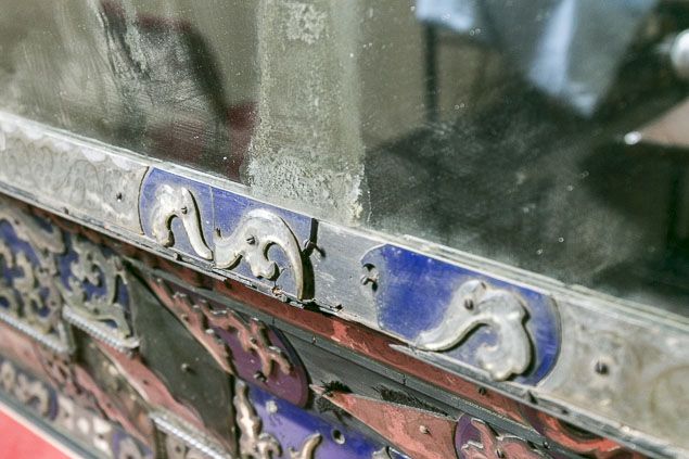 El trabajo se centró entonces en quitar los depósitos superficiales, reforzar los anclajes en mal estado y eliminar la corrosión con una limpieza química de una pieza elaborada bajo los parámetros de los antiguos maestros venecianos: anclando las piezas de vidrio y plata en un alma interna de madera.