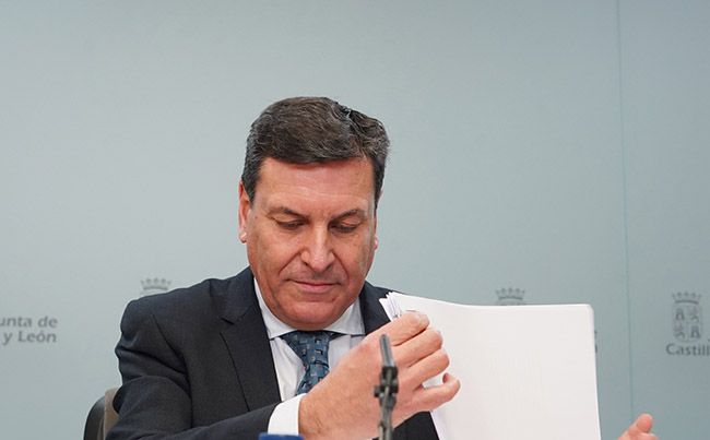 Miriam Chacón / ICAL. El consejero de Economía y Hacienda y portavoz de la Junta, Carlos Fernández Carriedo, comparece en rueda de prensa posterior al Consejo de Gobierno.La Junta de Castilla y León manifiesta en su escrito de contestación “la inexistencia del objeto sobre el que versa el requerimiento”, ya que el Estado pretende ampararse en "declaraciones políticas que son completamente ajenas a la aprobación de normas, el dictado de actos o resoluciones, o cualquier tipo de instrumento jurídico, cuya existencia se niega rotundamente".