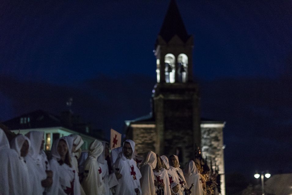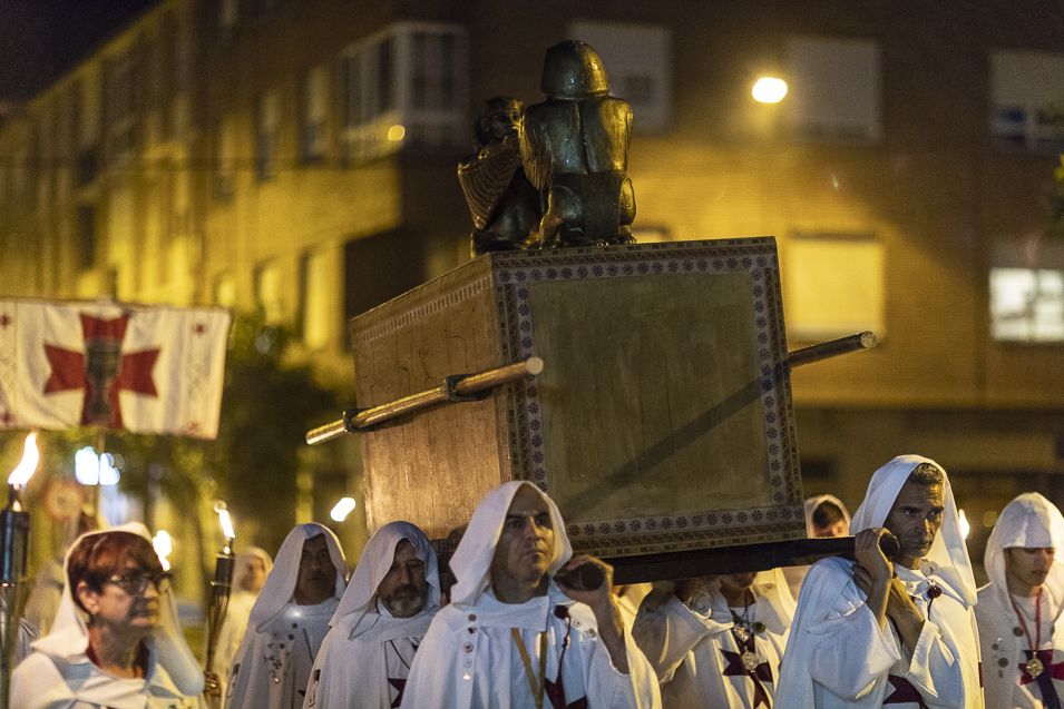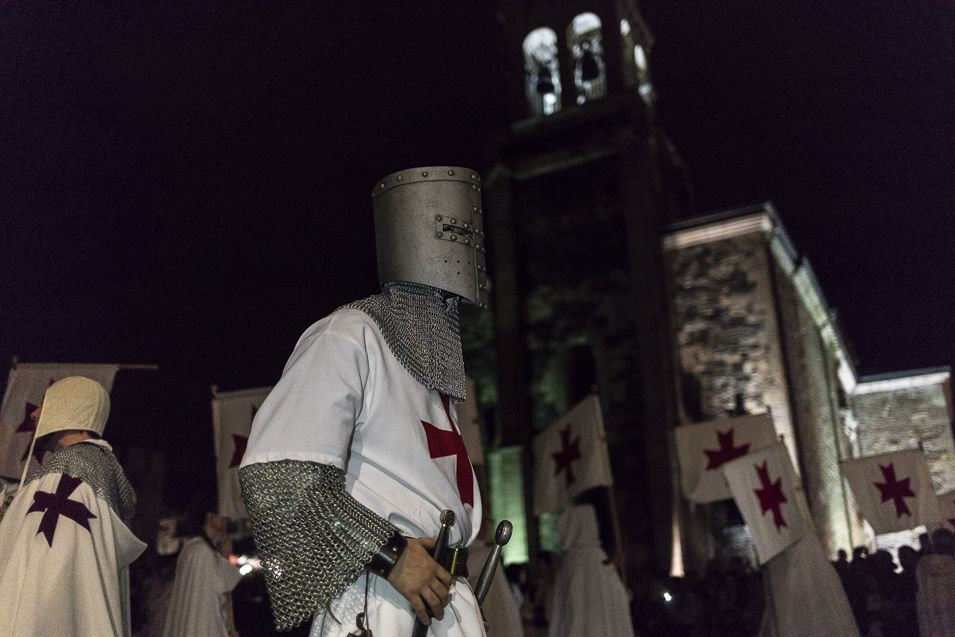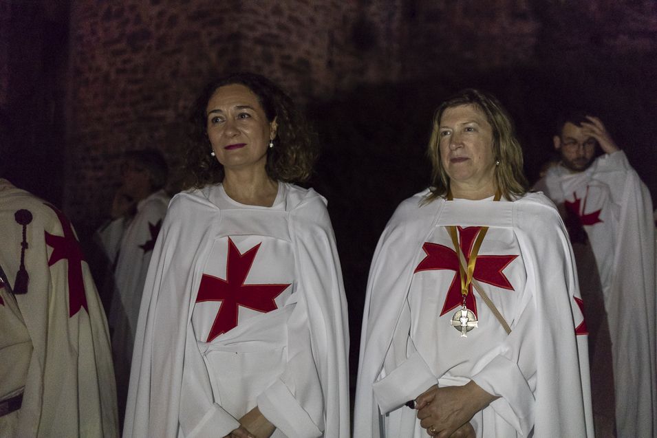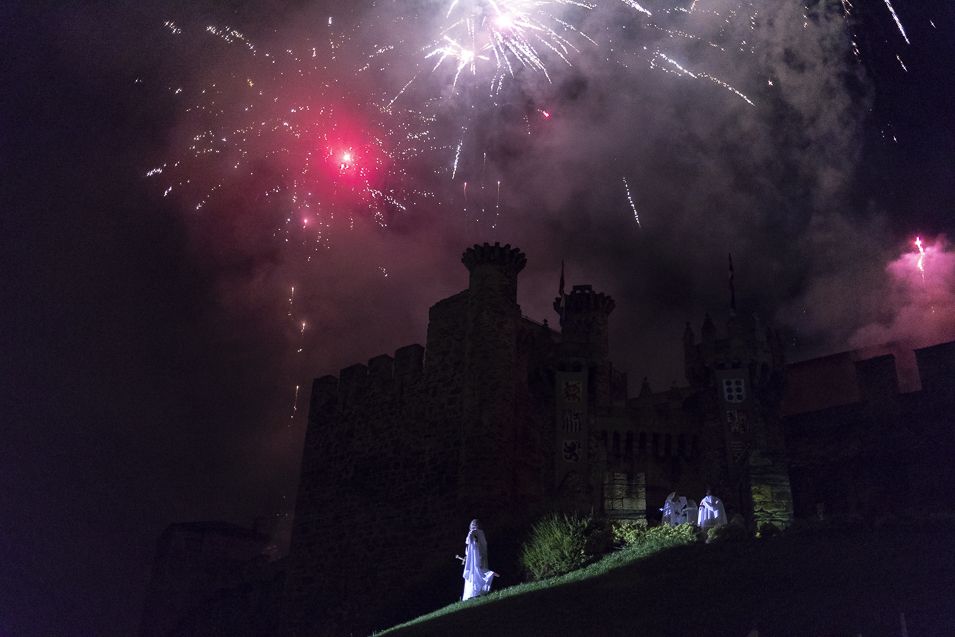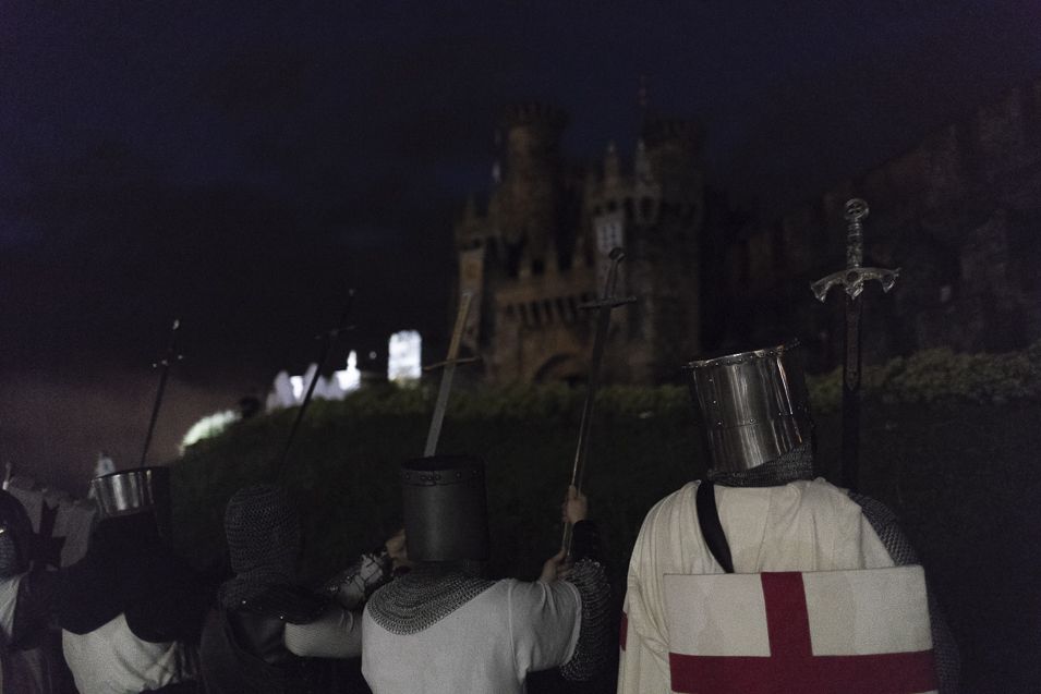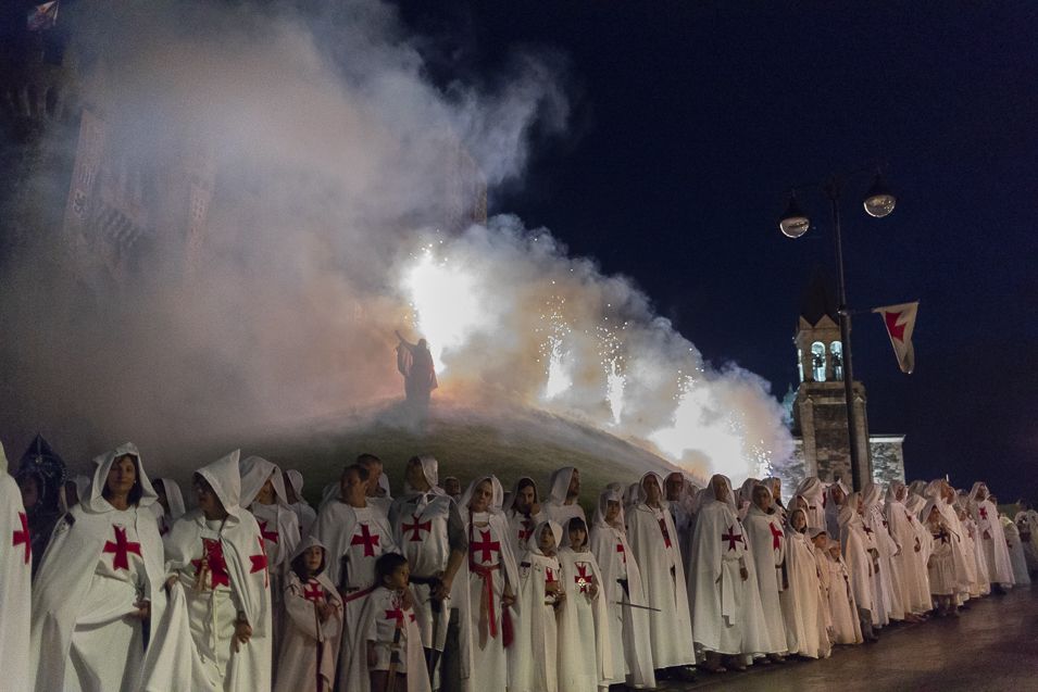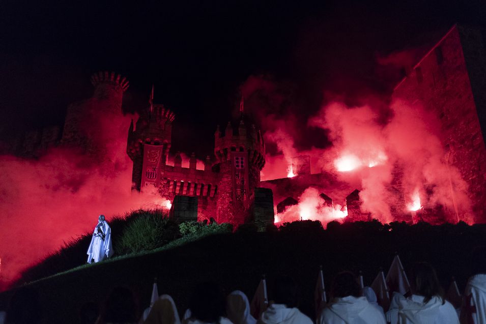 Guido da Garda llevó la guía del acto, ambientado con efectos pirotécnicos y con la actuación en directo de la Banda de Música Ciudad de Ponferrada. Las asociaciones de recreación templaria y las personas ataviadas de época participan en el desfile.
