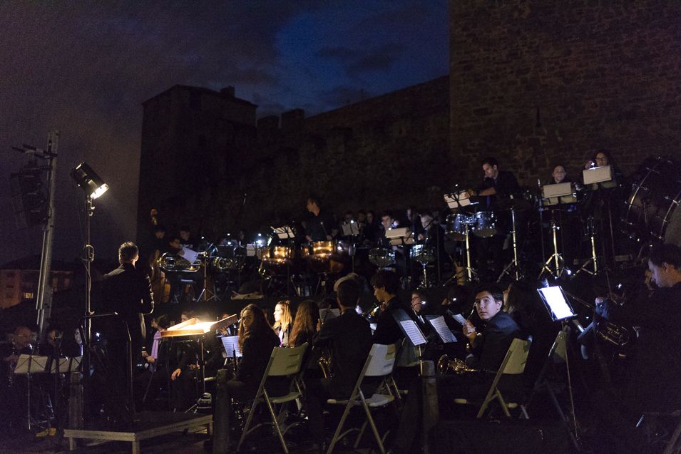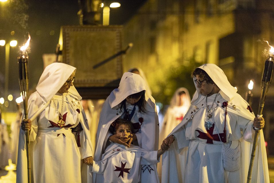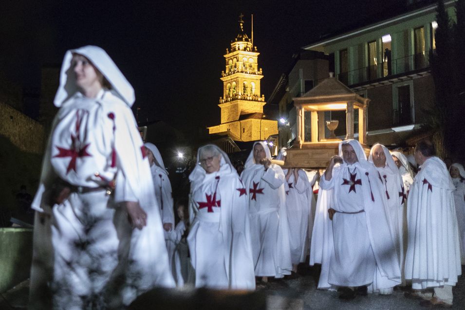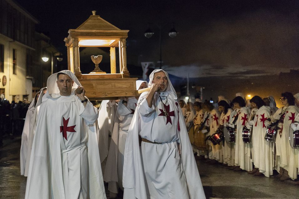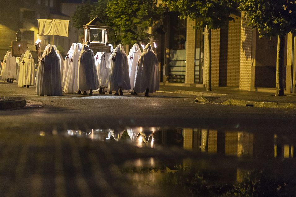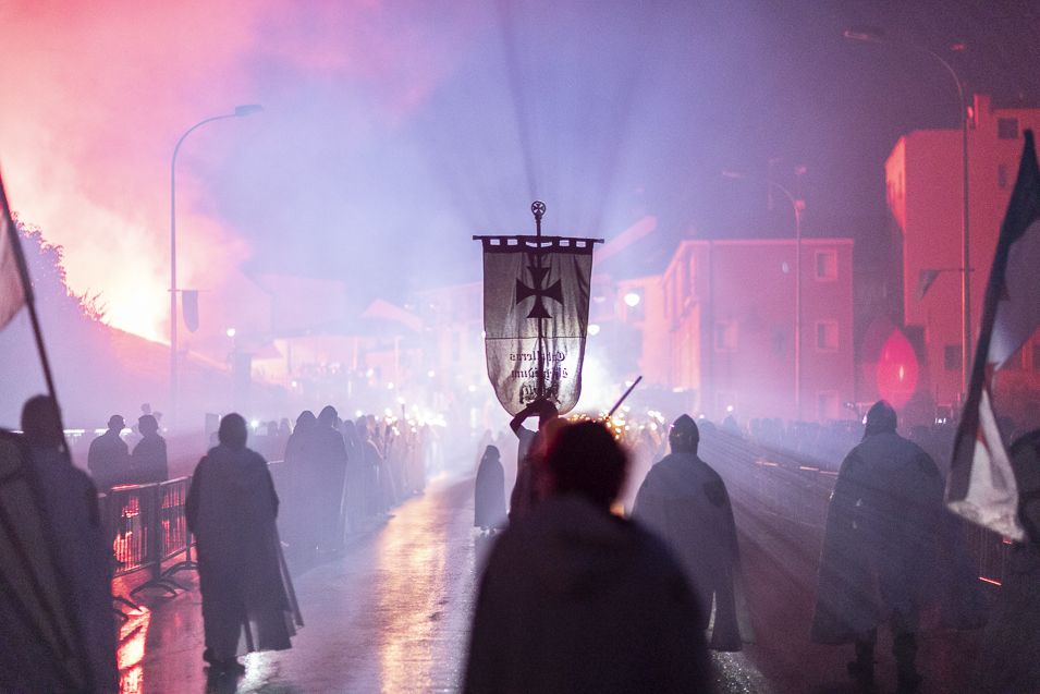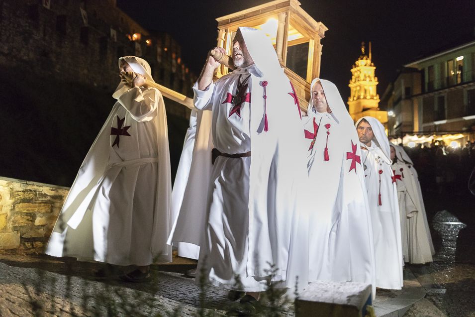 Guido da Garda llevó la guía del acto, ambientado con efectos pirotécnicos y con la actuación en directo de la Banda de Música Ciudad de Ponferrada. Las asociaciones de recreación templaria y las personas ataviadas de época participan en el desfile.