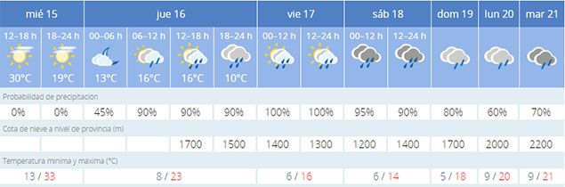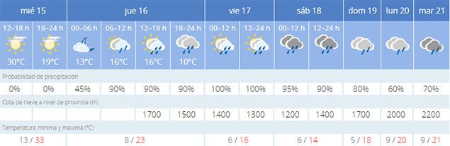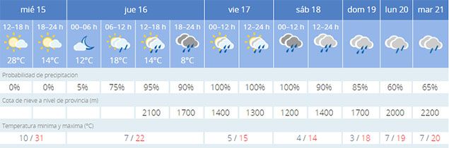 En cuanto a las precipitaciones, se iniciarán según la Aemet el jueves a primera hora y continuarán hasta la próxima semana. Estas lluvias, además de 'enfriar' la Comarca, beneficiarán a los que sufren la molesta pelusa del chopo.