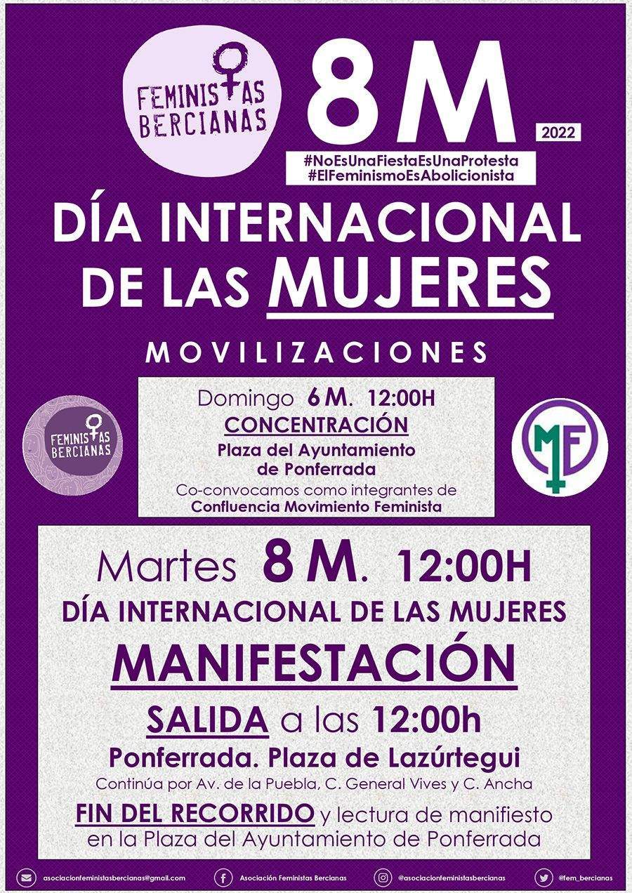 Desde la Asociación Feministas Bercianas hacen un llamamiento a toda la ciudadanía para acudir a ambas movilizaciones "y exigir una vez más las políticas públicas necesarias para revertir la barbarie machista que nos hostiga mientras quienes han de protegernos miran hacia otro lado".
