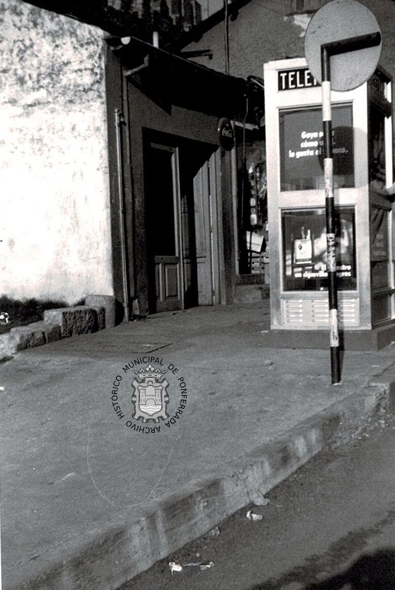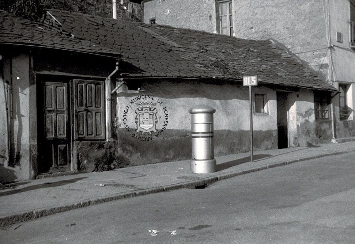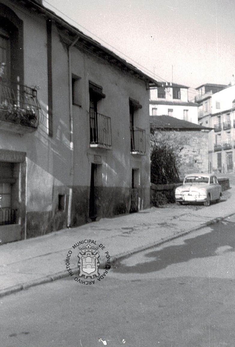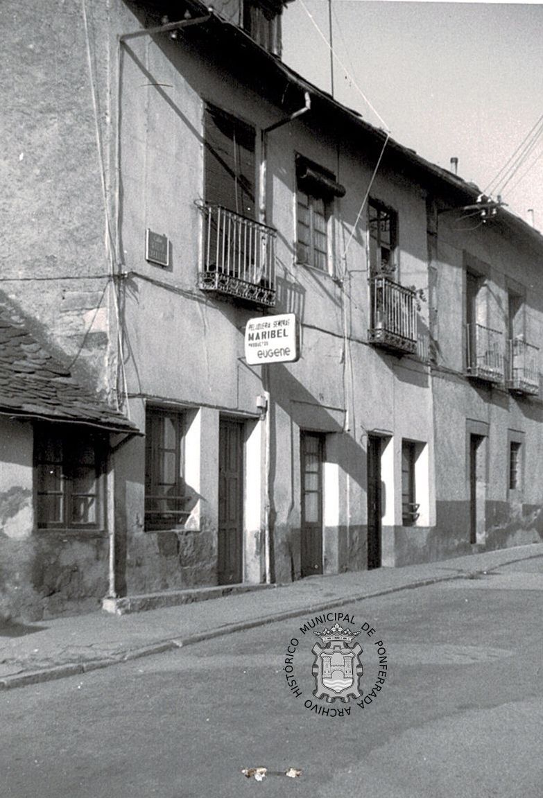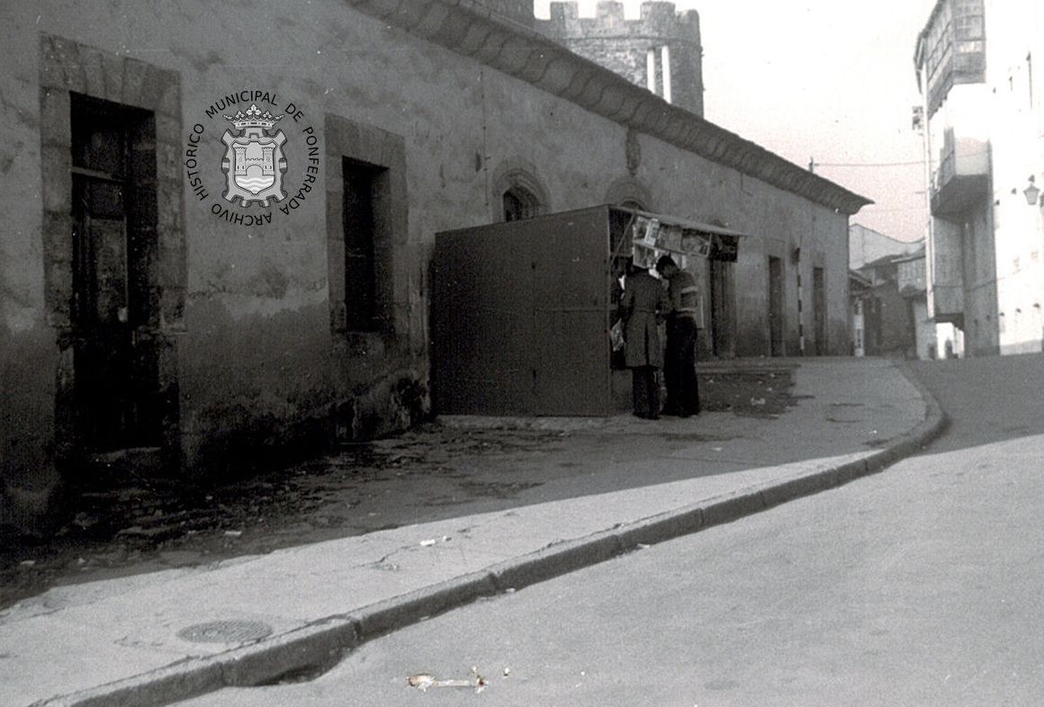 Foto: Casas adosadas a los muros de la ronda baja del castillo. Calle Gil y Carrasco. Digitalización del AHMP. Fotografía realizada a finales de los años 60 / Archivo Municipal de Ponferrada