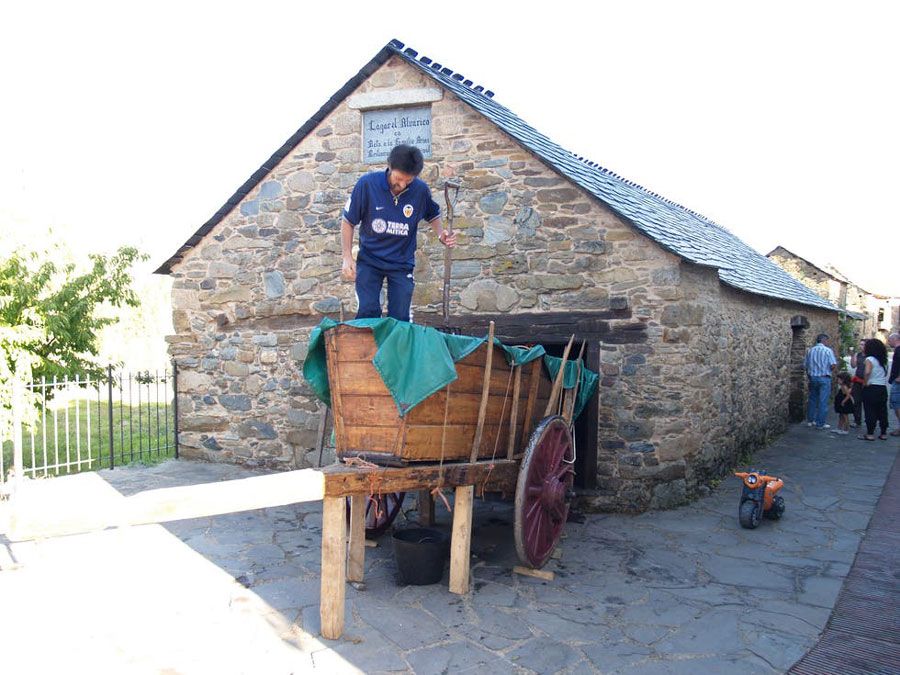 Tampoco han querido olvidar esa tradición en Cabañas Raras, que hace un par de años procedió a la restauración de la majestuosa viga de madera del antiguo lagar y ahora ubicada al aire libre, en la zona conocida como La Poza y visible desde el Camino Real de Carlos III. La vieja casa de los Cabo conservaba entre sus ruinas esa gran viga de castaño, instalada sobre su huso y su piedra y la familia decidió cederla al municipio para su recuperación.