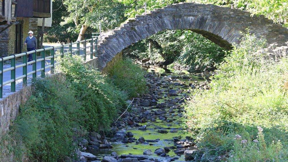 Foto: El río Meruelo a su paso por Molinaseca (León), con muy poco caudal de agua debido a la sequía / ICALEmbalses