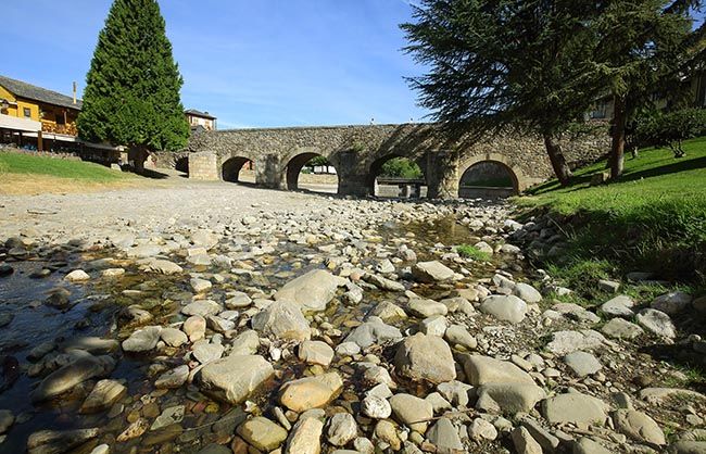 Foto: El río Meruelo a su paso por Molinaseca (León), con muy poco caudal de agua debido a la sequía / ICALSITUACIÓN ACTUAL DE LOS PRINCIPALES RÍOS DEL BIERZO A 3 DE OCTUBRE: CAUDALES 'BAJOS' O 'MUY BAJOS'