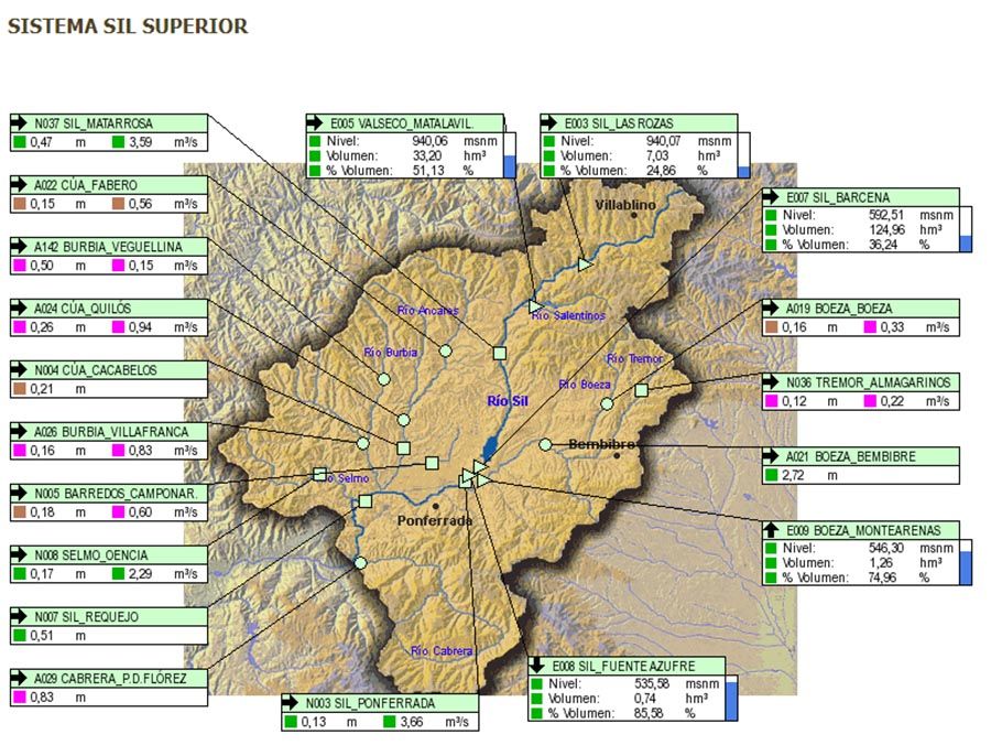 Además, el río Boeza alto, se encuentra en estado "bajo" con 0,33 m3/s de caudal, mientras que en Bembibre registra un nivel "normal". Por último, el río Sil a su paso por Ponferrada registra un nivel de caudal "normal" con 3,66 m3/s.