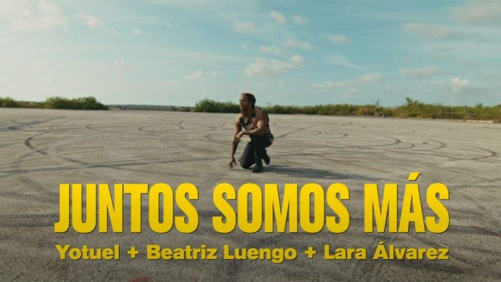 "Juntos Somos Más" es la canción oficial de España para esta competición y los encargados de ponerle voz y ritmo son el cantante cubano Yotuel, su conocida esposa Beatriz Luengo y la presentadora Lara Álvarez. Para esta última es su estreno profesional como vocalista.