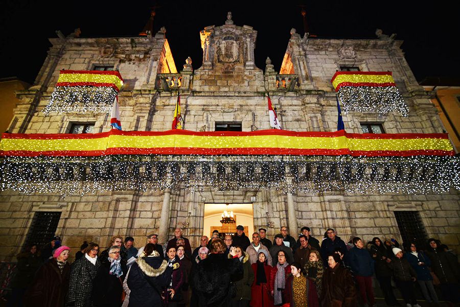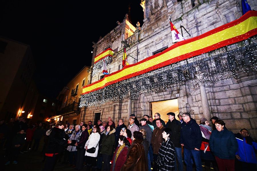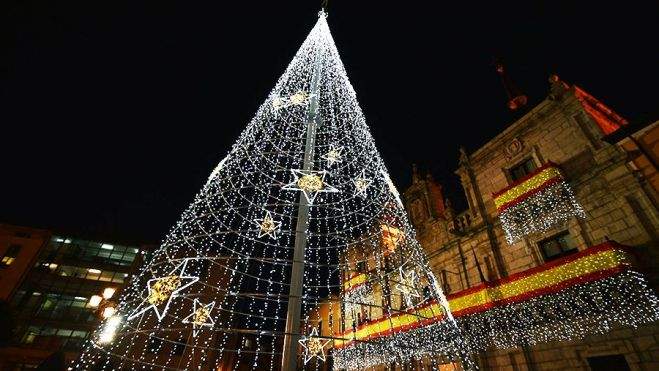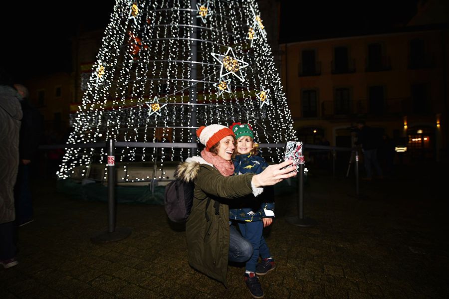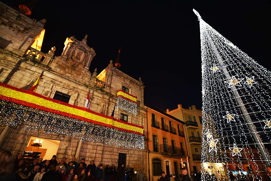 La iluminación navideña ha encendido la Navidad en Ponferrada este jueves a las 18.30 horas con la caída del sol. El alcalde de la ciudad, Olegario Ramón, ha procedido al encendido navideño del árbol de la Plaza del Ayuntamiento acompaña de concejales y ciudadanos que no se han querido perder este emocionante momento.