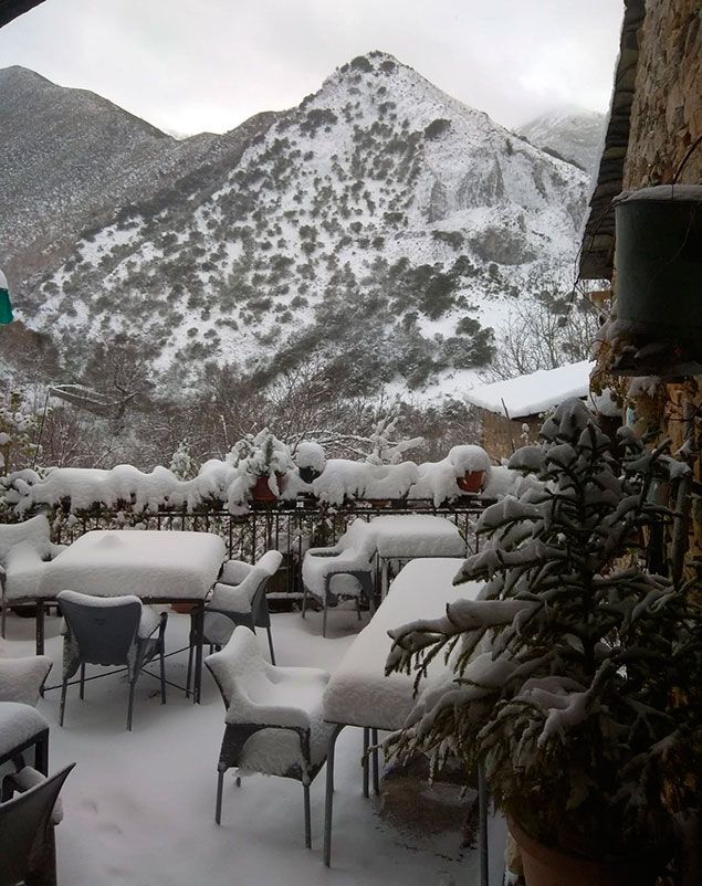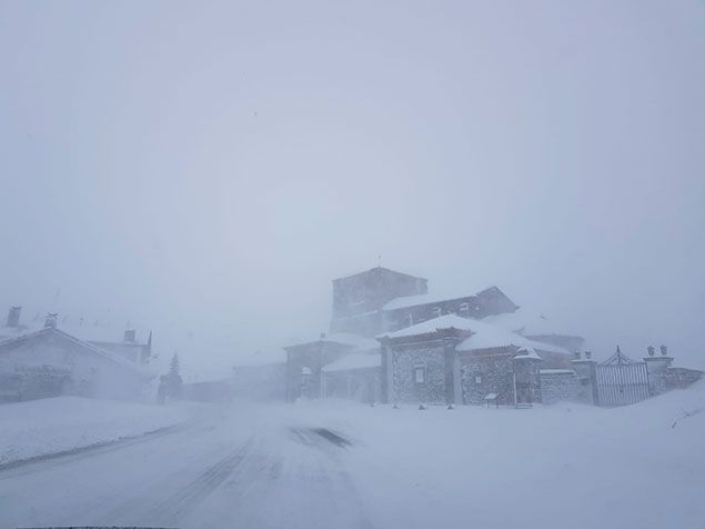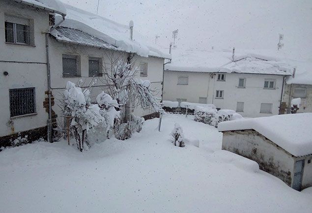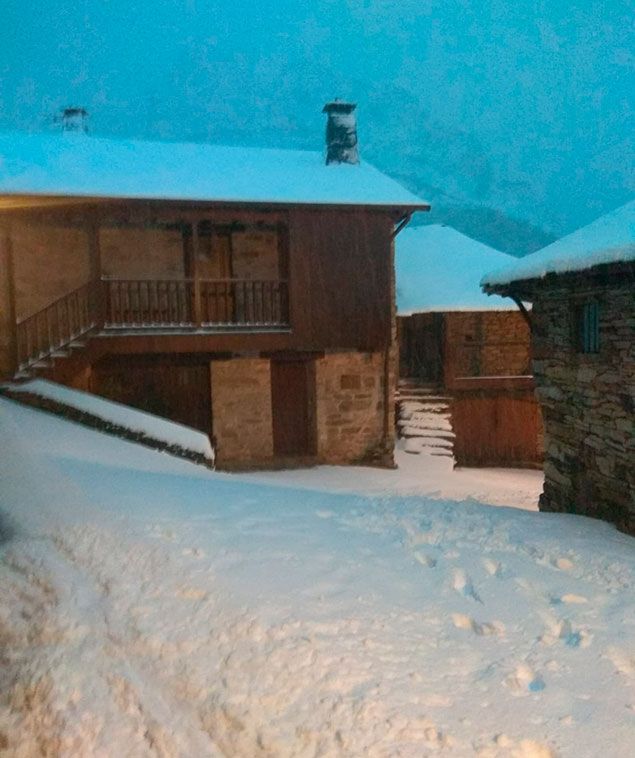 Entre las localidades vestidas este sábado de blanco se encuentra La Cueta -en el municipio babiano de Cabrillanes-, que con sus 1.450 metros de altitud, es la más elevada de la provincia. La familia que regenta el restaurantte Picos Blancos confirma vía telefónica que en las últimas horas “ha caído bastante” y que están incomunicados a pesar de que “ayer pasó la máquina y hoy esperemos que puedan llegar si no se encuentran nada raro”. La Cueta (Babia) El viento contribuyó a acumular la nieve durante la noche y en algunos puntos ya se supera el metro de altura.