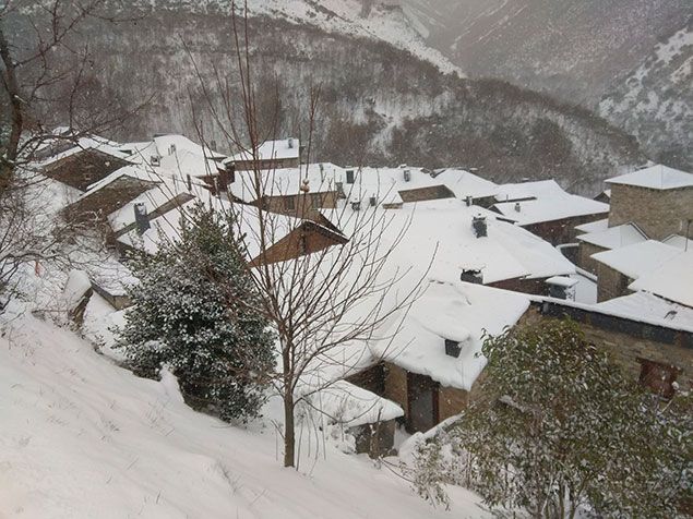 Balouta, en el municipio berciano de Candín, en los Ancares leoneses, es otro de los pueblos que más padece los rigores invernales. Con una docena de vecinos repartidos en cinco casas, uno de ellos explicó hoy a Ical que “no se puede salir del pueblo y el panadero estuvo ayer, con un todo-terreno”. El viento acumuló la nieve creando trabes que multiplican los 40-50 centímetros acumulados en las calles y este sábado sigue nevando. Con una docena de vecinos repartidos en cinco casas, uno de ellos explicó este sábado a Ical que “no se puede salir del pueblo y el panadero estuvo ayer, con un todo-terreno”. El viento acumuló la nieve creando trabes que multiplican los 40-50 centímetros acumulados en las calles y este sábado sigue nevando.