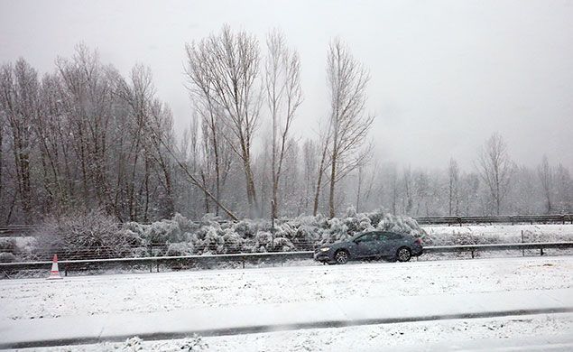 Nieve en la Nacional 630, a la altura de Villamanín