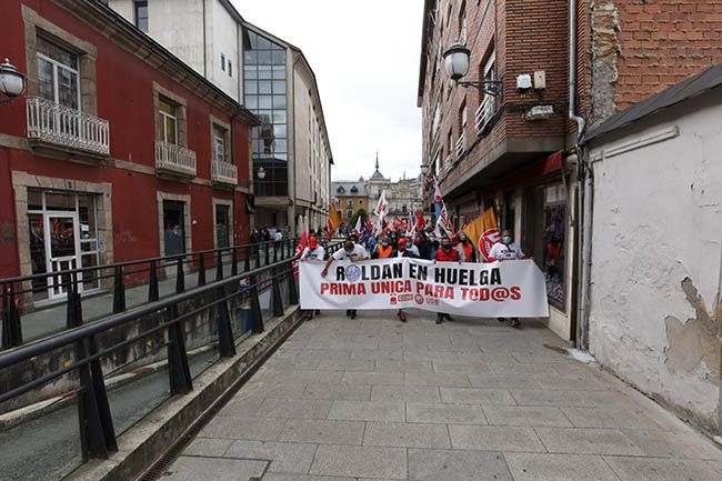 La plantilla de la acera ha llevado a cabo varias actuaciones esta semana para reivindicar su posición y exigir a la empresa la prima única. El martes repartieron folletos con carácter informativo en el Mercado de Abastos de Ponferrada con el objetivo de explicar las razones del conflicto laboral a la ciudadanía y "que la ciudadanía se una a la manifestación para apoyar la situación". El miércoles 'tomaron' las calles de la capital berciana en una marcha.