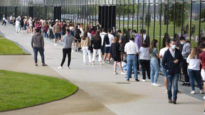 La confusión entre los asistentes viene dada porque los organizadores han intentado separar en dos filas a los que iban a recibir la primera dosis de los que tendrían la segunda, algo que no ha gustado demasiado a quienes llevaban horas esperando para la vacuna.