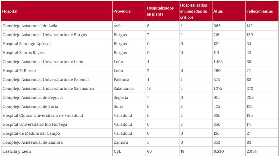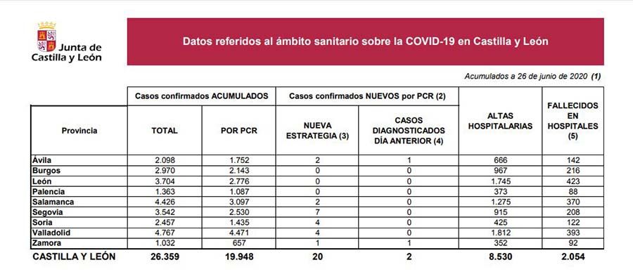 *Nota: Desde el pasado 19 de junio, la Junta informa de los datos de COVID-10 en Castilla y León una vez a la semana.