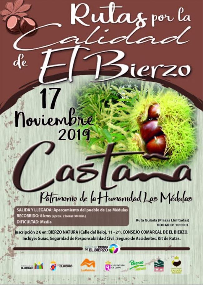 Por su parte, el presidente del Consejo Comarcal del Bierzo, Gerardo Álvarez Courel, adelantó que el castaño y la castaña serán los protagonistas de la sexta y última ruta del año por los productos de calidad de la comarca. El recorrido guiado por los sotos en plena producción tendrá lugar el domingo 17 noviembre en el entorno natural de Las Médulas.
