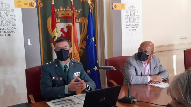 La Guardia Civil ha presentado en la mañana de este miércoles en la Subdelegación del Gobierno en León, el 'Equipo @' de la Comandancia de León dedicado al asesoramiento, prevención y respuesta en materia de ciberdelincuencia. Al acto han asistido el Subdelegado del Gobierno en la provincia de León, Faustino Sánchez, y el teniente coronel jefe de la Comandancia de la Guardia Civil de León, Julio Andrés Gutiérrez Hernández.