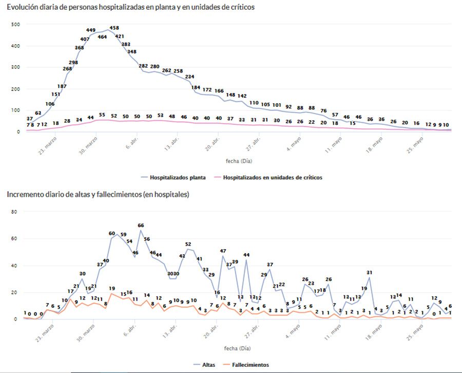 En cuanto a los datos del Hospital ofrecidos por la Junta de Castilla y León este sábado, no registran variaciones respecto al viernes, además de la citada salida de la UCI a planta de la paciente bembibrense. El centro hospitalario acumula este sábado su undécimo día consecutivo sin nuevos ingresos. El total de altas se mantiene en 286 y el de fallecidos en 72 desde el inicio de la pandemia.