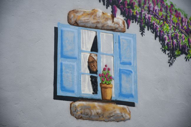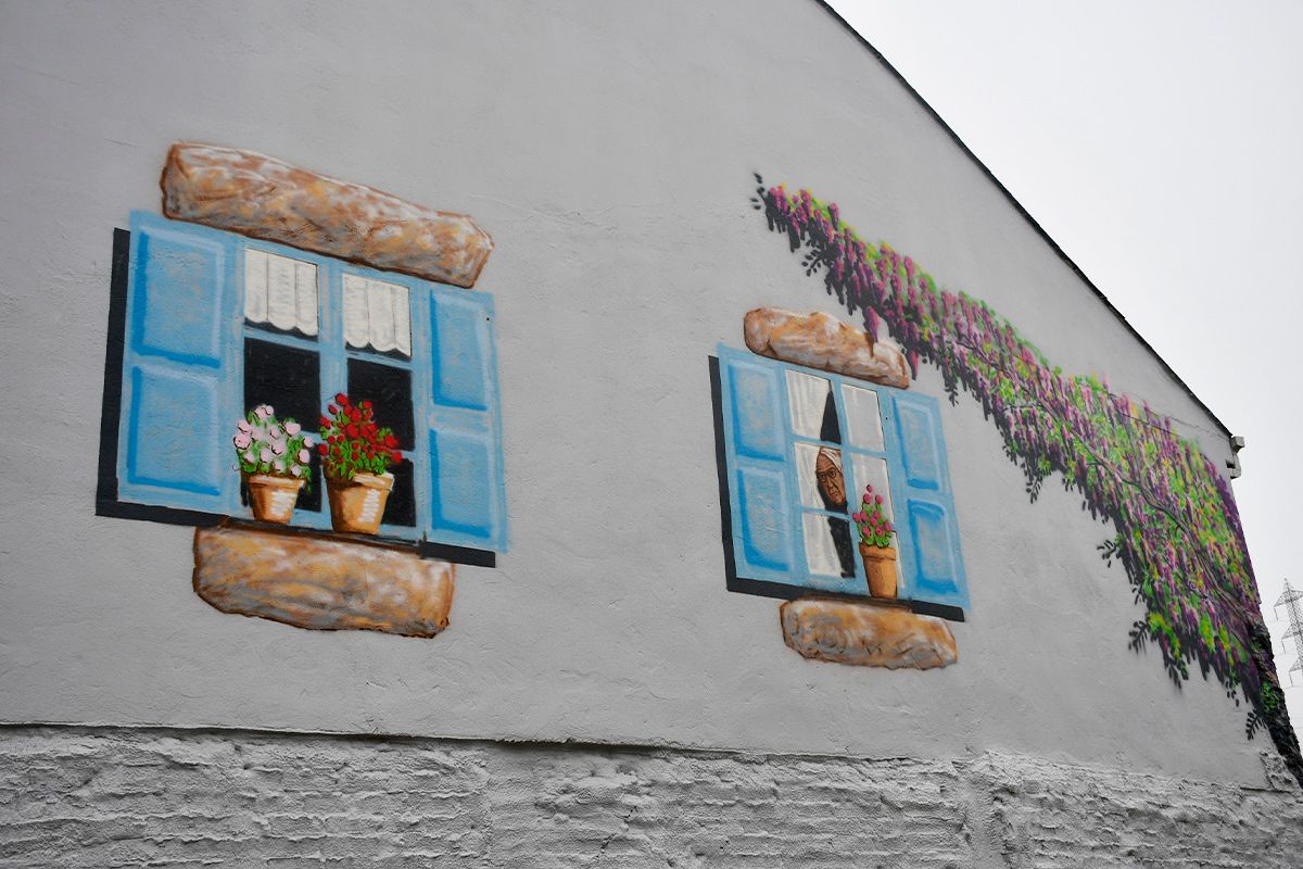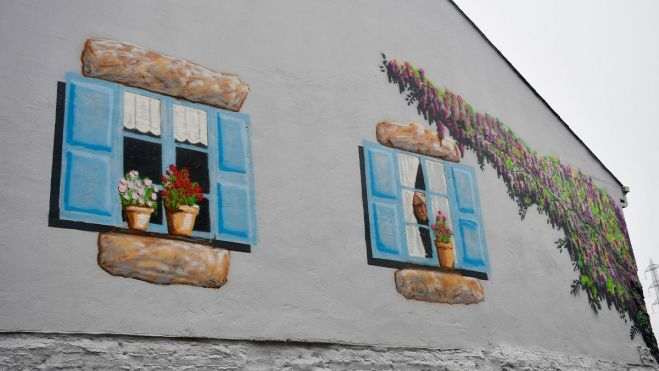 El dibujo artístico se ha apoderado de alguna vivienda en Santo Tomás de las Ollas. Uno de los domicilios próximos a la plaza anexa a la Iglesia de esta localización ponferradina, cuenta con una fachada destinada al arte bajo la creación de un mural, que ha permitido 'abrir la ventana' del Bierzo a la 'vieja del visillo'.