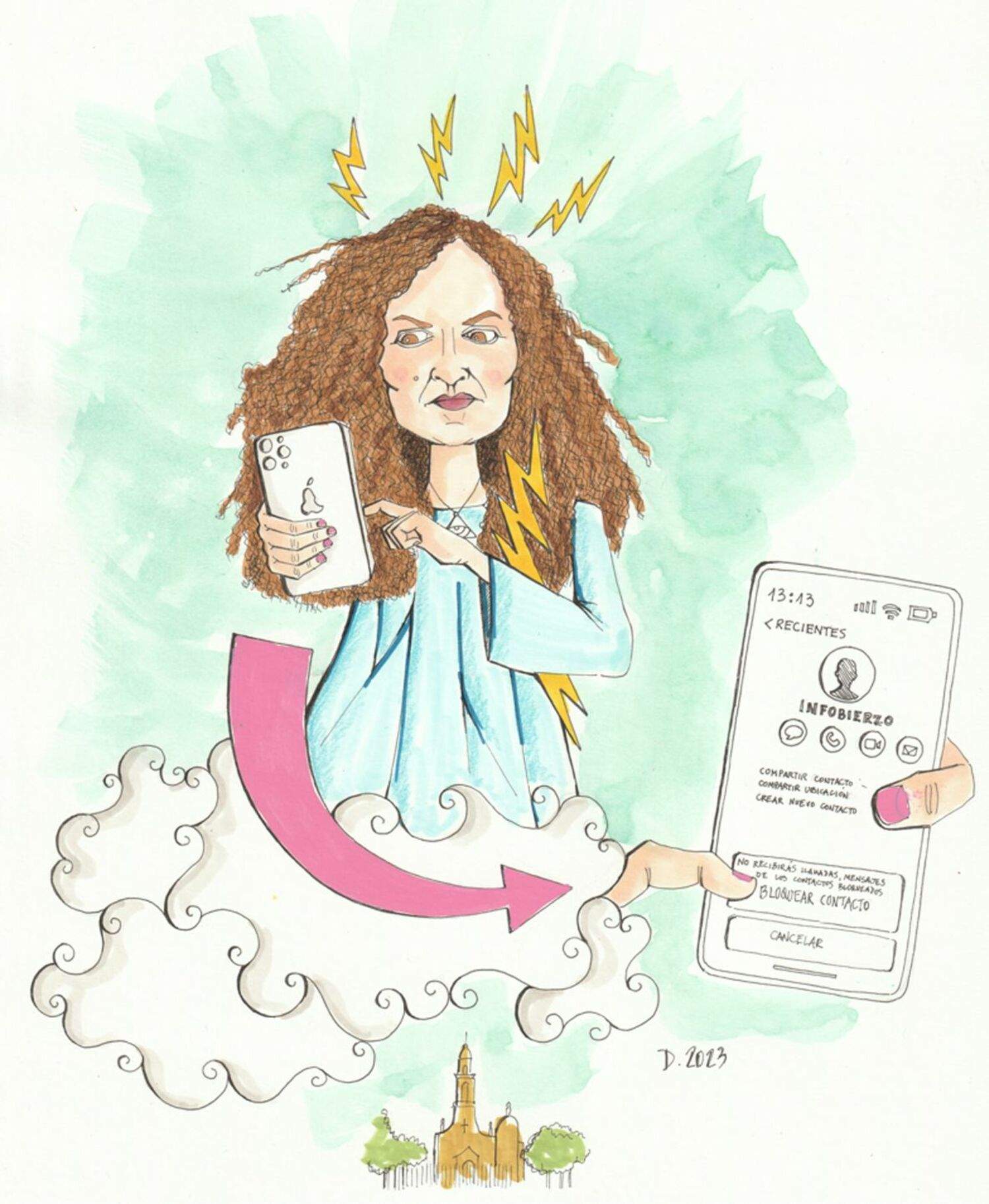 Así, con su consecuente reacción del bloqueo en Whatsapp se ha pintado ella sola otra viñeta, que únicamente condensa nuestro dibujante de cabecera, Daniel Buitrón.