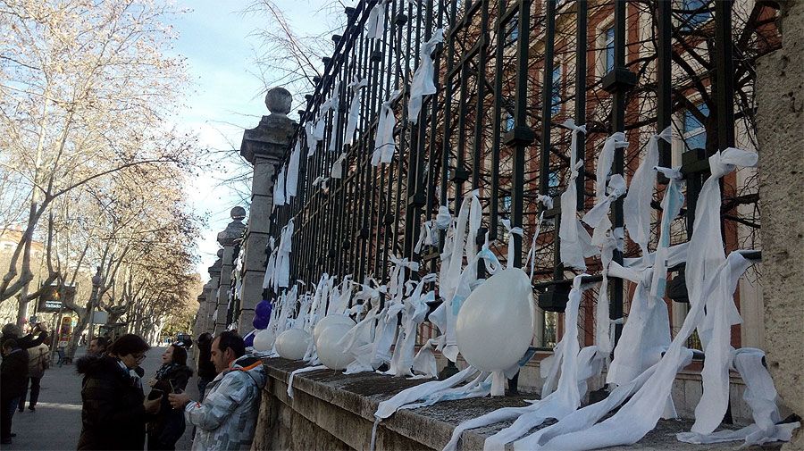 Con un lento ritmo y cadencia constante de personas, la ‘marea blanca’ recorrió a continuación el Paseo de Filipinos, Arco de Ladrillo y el Hospital Militar, hasta alcanzar la sede de la Consejería de Sanidad, donde varios manifestantes poblaron de lazos blancos las verjas que rodean el edificio mientras la ‘marea blanca’ exigía el cese del consejero con gritos como “Aguado, dimite, el pueblo no te admite” o “¡Consejero dimisión!”.