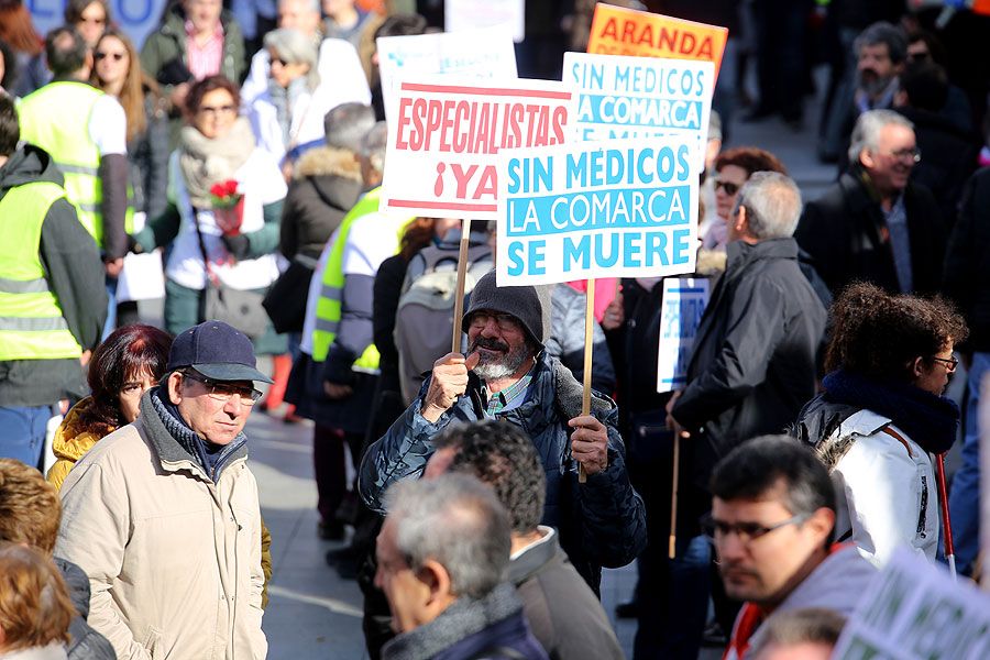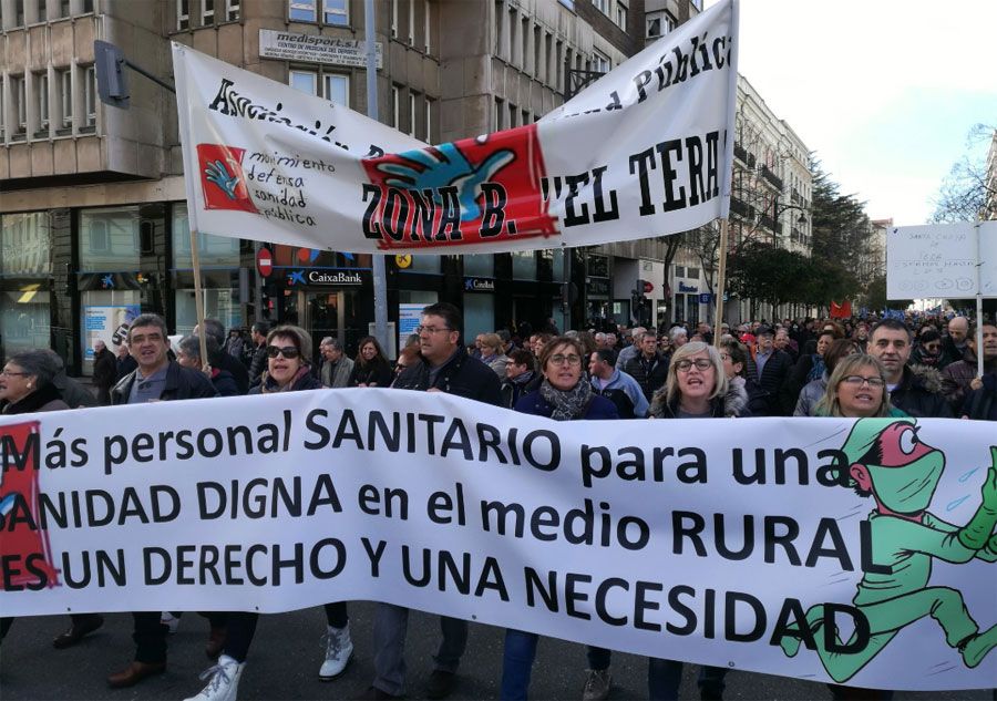 Representantes de Sayago, La Maragatería, el Tiétar, La Bureba, la montaña palentina e infinidad de comarcas más se dejaron notar con sus pancartas, donde se leían consignas como “Sin sanidad los pueblos se mueren”, “La sanidad no es solo para la ciudad” o “Nuestra salud no es un negocio”.