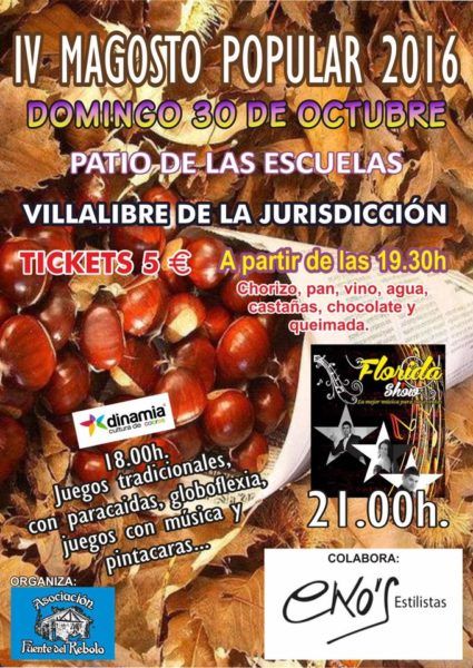 La Asociación Fuente del Rebolo ha organizado el IV Magosto Popular de Villalibre para el domingo 30 en el patio de las escuelas. A las 18.00h comenzará la celebración para los más pequeños que tendrán juegos tradicionales, con paracaidas, globoflexia, juegos con música y pintacaras. A partir de las 19.30h se ofrecerá chorizo, pan, vino, agua, castañas, chocolate y queimada por 5 euros. La celebración concluirá con la actuación del grupo musical Florida a las 21.00 horas.
