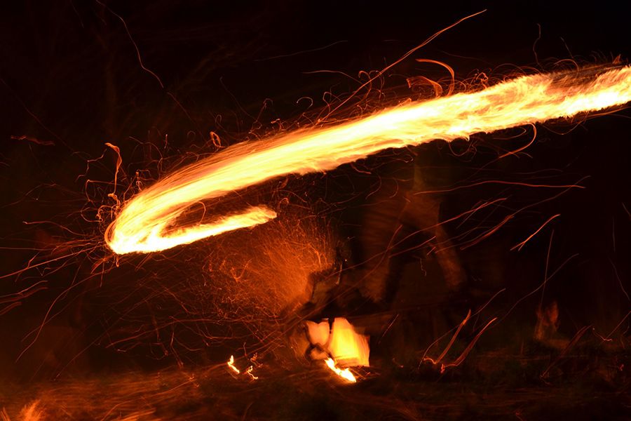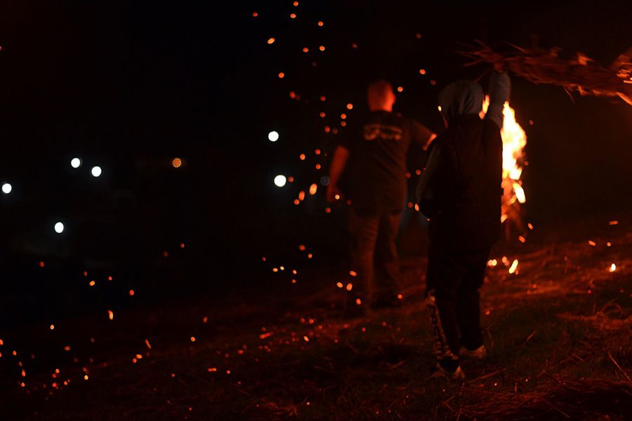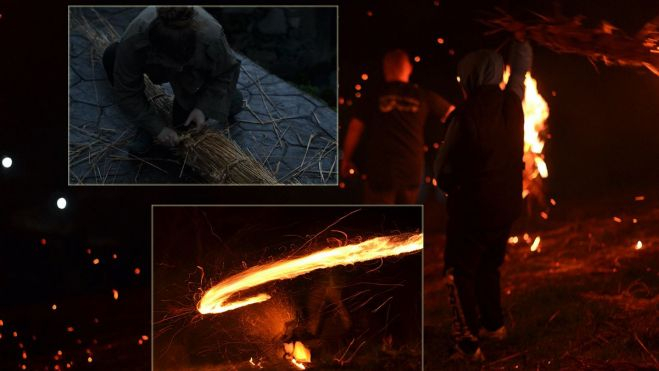 Haciendo una fachiza con paja seca. Fuente: Asociación Acebo BurbiaEstos peculiares fuegos artificiales se queman desde La Lagúa, una pequeña colina desde la que se divisa todo el pueblo. Así, aquellas personas que no suben a esta colina, visualizan y disfrutan de un espectáculo de fuego en las montañas que rodean el pueblo. El color rojo y vivo del fuego que quema la paja seca de las fachizas, se contrasta con la oscura noche que invade las montañas del corazón de Los Ancares Leoneses.