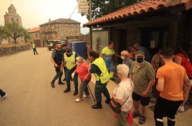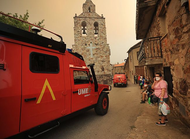 La Guardia Civil comenzó a evacuar a los habitantes de la localidad mediante llamamientos a través de la megafonía de sus dotaciones y decenas de vecinos ya salieron del término municipal en sus coches particulares. Además, Emergencias fletó un autobús cuya misión será la de trasladar a las personas mayores con destino al pabellón Eladio Jiménez de Ciudad Rodrigo.