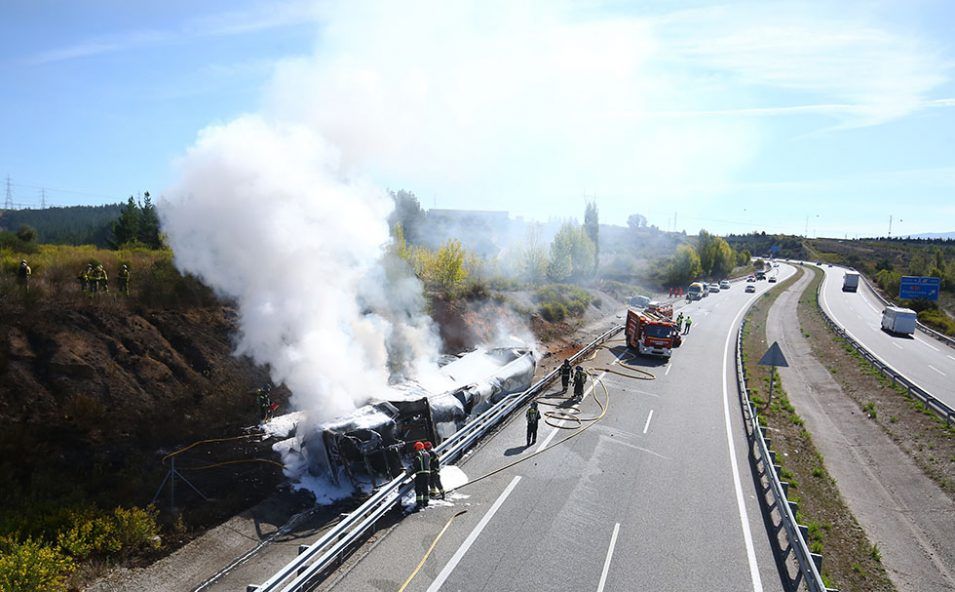Un fallecido tras incendiarse su camión en el choque contra un turismo en la A-6 a su paso por Ponferrada