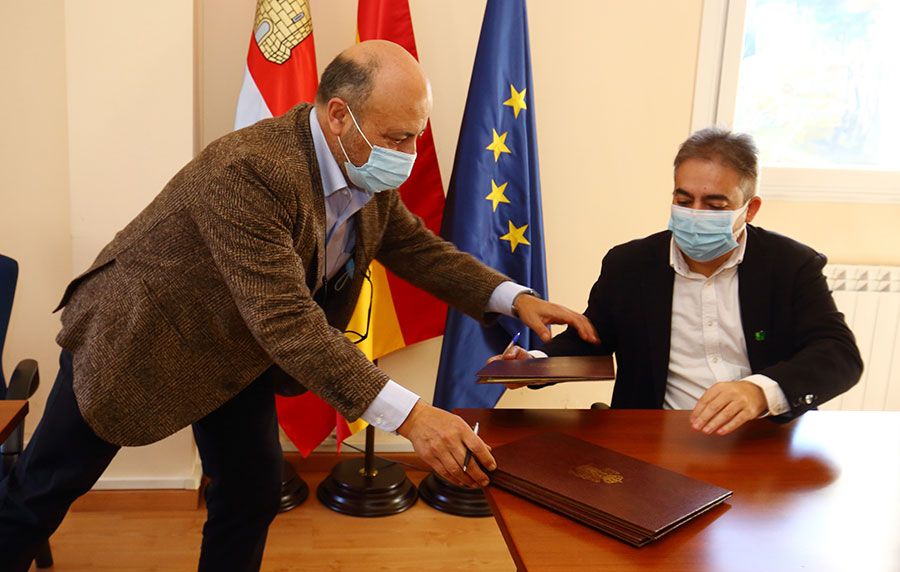 El presidente de la Confederación Hidrográfica Miño-Sil (CHMS), José Antonio Quiroga (I), junto al presidente de Asprona Bierzo, Valentín Barrio (D), durante la firma del convenio de colaboración que facilitará la inserción de personas con discapacidad intelectual a través de prácticas formativas en las oficinas de la CHMS en PonferradaEl presidente de la Confederación Hidrográfica Miño-Sil (CHMS), José Antonio Quiroga, confirmó este jueves que el proyecto para continuar la senda peatonal en la margen derecha del río Sil, a su paso por Ponferrada, comenzará a licitarse en 2021, tras superar la “dificultad técnica” que suponía la cesión de terrenos por parte del Ayuntamiento. “Ese escollo está salvado”, aseguró Quiroga, que confió en que, una vez trasladados los documentos pertinentes, la última fase del procedimiento administrativo se complete antes de que acabe el año.