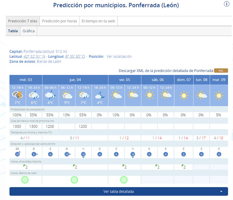 De este modo, los primeros copos blancos han 'pintado' las cumbres cercanas a Ponferrada, siendo los primeros protagonistas, tanto El Morredero como la Aquiana, que ya lucen los tonos blanquezinos entre sus laderas, rocas y picos. En estos términos, la cota de nieve en Ponferrada se encuentra este miércoles 3 de noviembre a entre los 1300 metros y los 1200, como la previsión para la próxima jornada. Así, durante la segunda parte de la semana, en especial de cara al fin de semana, la profunda vaguada polar, conducida por el jet stream, tenderá a aislar a una DANA. La Agencia Estatal de Meteorología, Aemet, lo anunció al informar de la bajada de la cota de nieve entre los 1.200 y los 1.400 metros para el día de hoy, al tiempo que las temperaturas siguen la misma tendencia, con máximas poco superiores a diez grados y mínimas por debajo de cero.