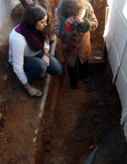 Trabajos de exhumación / Fotos de Víctor Alón.“Me siento feliz, como si estuviera flotando, muy contenta”, confiesa Milagros Camuñas, tras conocer que todas la evidencias apuntan a que los dos cuerpos hallados en la fosa abierta en el cementerio de Villafranca del Bierzo (León) pertenecen a su madre, Vicenta López, y a su hermano, Jesús Camuñas, ambos asesinados a tiros el 28 de octubre de 1948 por haber cobijado en su casa de Castiñeiras (Balboa) a varios guerrilleros antifranquistas que el día anterior habían sostenido un tiroteo con la Guardia Civil, en el que había perdido la vida un agente.