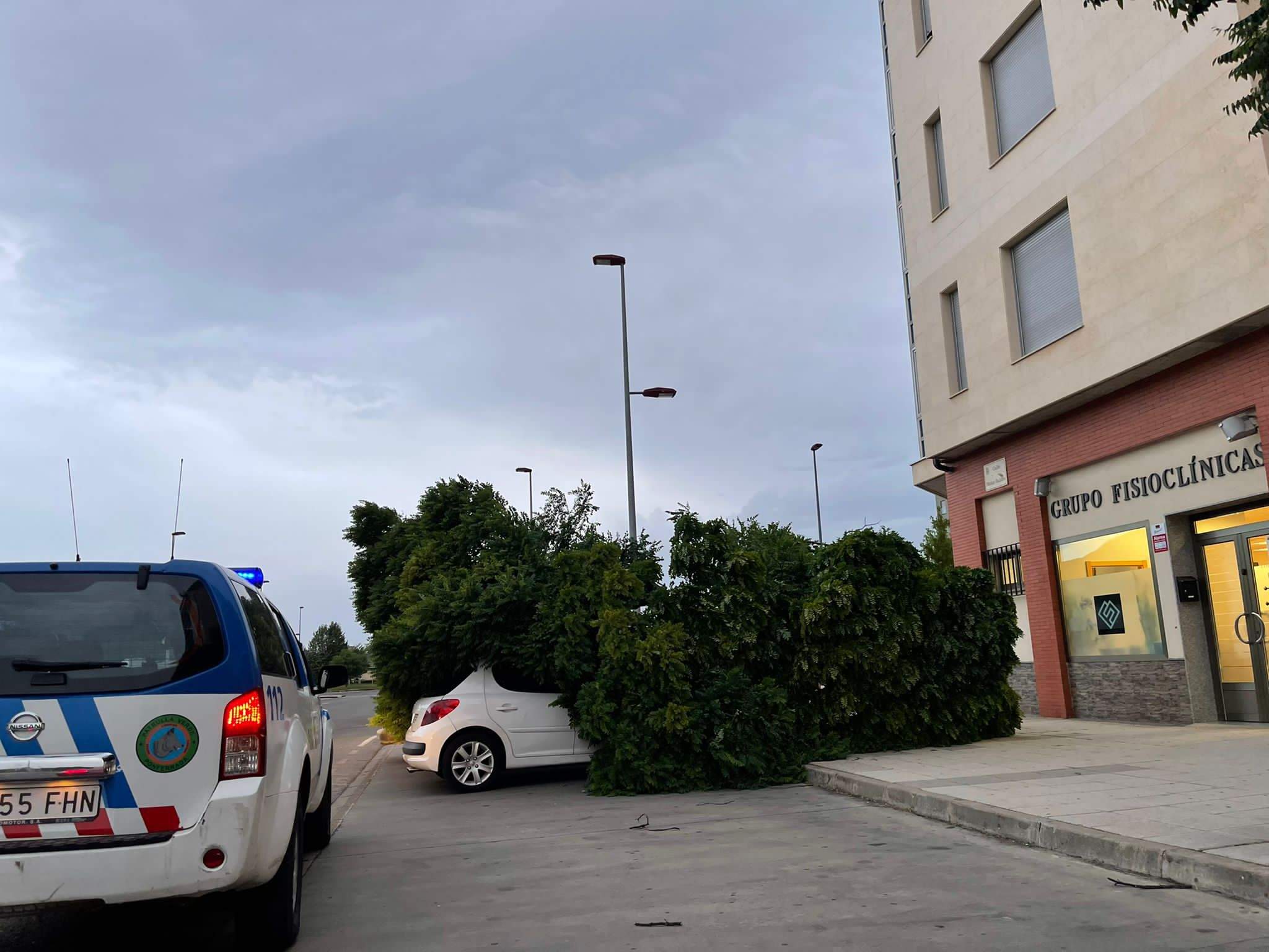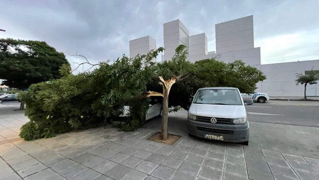 Las rachas de viento rompen varios árboles en La Rosaleda causando daños a vehículos