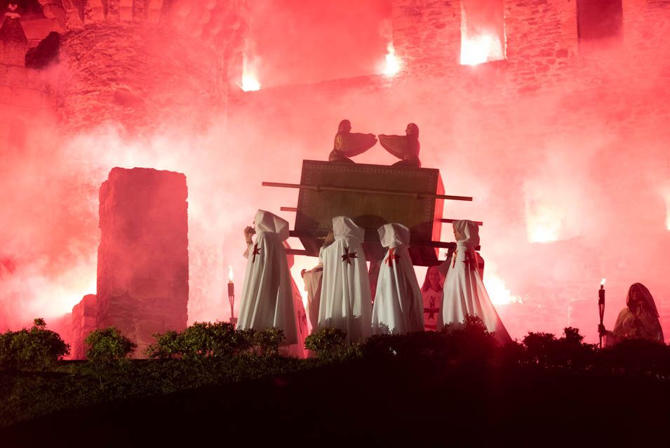 Guiados por el Maestre Guido de Garda, los templarios han depositado el Arca y el Santo Grial en el Castillo para sellar con Ponferrada un pacto de eterna amistad. Los muros de la fortaleza custodiarán así las reliquias hasta el año que viene.