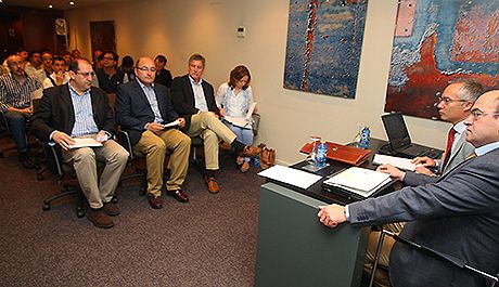 El director general de Energía y Minas saluda a varios de los asistentes a la jornada. César Sánchez (Ical)