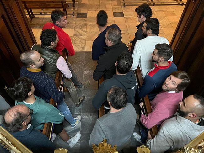 Los cofrades y porteadores del 'Jesús del Amor Más Grande' de San Ignacio ya ensayan bajo las andas esperando el Jueves Santo de Ponferrada