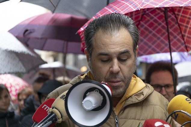 El portavoz de los comerciantes de la calle Camino de Santiago, Francisco Cebrián, durante la protesta. Foto: Mario de la Torre
