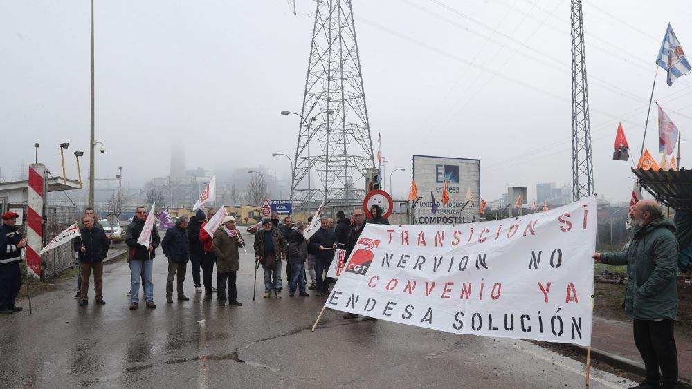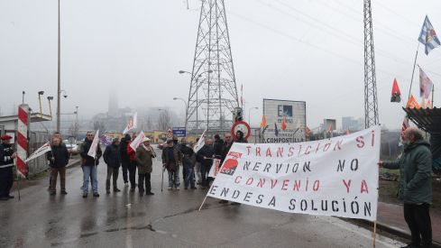 Los trabajadores de la empresa Nervión Industries, la subcontrata que se encarga de la limpieza industrial en la central térmica berciana de Compostilla II, protagonizan este viernes una nueva jornada de protesta a las puertas de las instalaciones, con el objetivo de reclamar un acuerdo para la firma de un nuevo convenio colectivo. La treintena de empleados mantendrá una concentración a partir de las 13.30 horas, avanzó el representante del sindicato de Construcción y Servicios de CCOO en el Bierzo, Alfredo J. Peláez. “No hay avances, no se mueve nada, seguimos sin respuesta por parte de la empresa”, explicó.